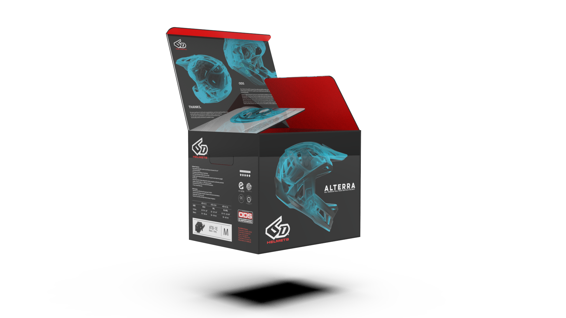 Design of, artwork creation, and box design concept for 6D Helmets.
